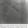 Discussion. A number of maneuvers can be used to free an entrapped post-inflation stent-balloon. First, the balloon can be gently pushed forward within the stent, as well as gently rotated, to free entrapped material and rewrap the balloon, before again withdrawing.7,8 Care must be taken to not damage the shaft of the balloon itself during rotation, as it can fracture. Second, the balloon can be reinflated to low pressures and deflated in succession, then withdrawn. If these initial steps do not work, consideration should be given to alerting the surgical backup and preparing an OR suite. An attempt can now be made to advance a second wire distal to the trapped balloon to straighten the vessel and provide a second rail for withdrawal. A standard medium body wire is a reasonable choice for this purpose, though softer and/or hydrophilic wires can be used to facilitate passage. If the stent-balloon still does not disengage, a second low-profile balloon, 1.5–2.0 mm in diameter, such as a Medtronic Sprinter™ (0.021˝ crossing profile, semicompliant)9 or Boston Scientific Maverick™ (0.017˝ crossing profile, noncompliant)10 can be advanced on the second wire and inflated alongside the trapped balloon to free it. Another possible technique is to place a smaller sized catheter over the shaft of the balloon, such as a glide catheter (which will require cutting the end of the shaft), and advancing it over the trapped balloon so as to ensheath it. All of these techniques were tried in our particular case, without success. A final tactic is to use a microsnare in this situation, which is well-described.4,11