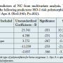 Prediction of NC. The percentage of NC measured using VH-IVUS analysis correlated with FRS (P=.007; r = 0.2), PAV (P=.04; r = 0.2) and inversely with the level of apolipoprotein A (Apo A; P=.047; r = - 0.27). Higher content of NC was found in patients with risk type of HO-1 polymorphism (17.1 ± 8.9% vs 12.7 ± 7.8%; P=.02) and with