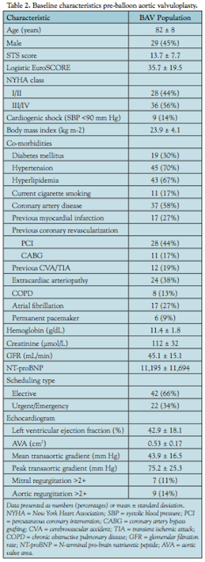 BAV in isolation can improve symptoms;19 however, it has little impact on long-term survival in patients with severe symptomatic AS.21 TAVI has been shown to increase 1-year survival in patients with severe AS when compared to conventional therapy including BAV.3 In this study, BAV has shown potential in patients with symptomatic AS and high operative risk when utilized as a treatment option by a heart team that has an integrated approach including TAVI.
