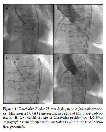 - Hernández-García JM, Muñoz-García AJ, Alonso-Briales JH, et al. Percutaneous treatment of a dysfunctional aortic bioprosthesis with the CoreValve prosthesis. Rev Esp Cardiol. 2011;64(2):155-158.