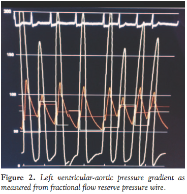 In the case presented here, we similarly report the use of a FFR pressure wire to obtain simultaneous, direct measurements of the LV and aortic pressures across a bi-leaflet mechanical aortic valve prosthesis in the setting of both aortic and mitral mechanical valve prostheses. We used the pressure wire measurements to confirm evidence of severe valve stenosis and dysfunction from non-invasive testing, without the need for direct transapical puncture and its inherent risks. The use of the pressure wire also allowed us to avoid the risks of acute damage of the already dysfunctional valve or catheter entrapment by traditional retrograde catheter access across a mechanical valve. Furthermore, we report the first case of the use of this technology for this indication via the radial artery access approach. This demonstrates yet another indication for transradial cardiac catheterization and our case adds to the growing body of literature in which transradial cardiac catheterization provides a significant safety advantage.
