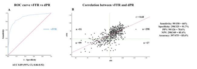 The main findings of this study can be summarized as follows: (1) vFFR shows a good agreement with dPR, consistent among specific clinical and lesion subsets; and (2) vFFR shows a high diagnostic accuracy for dPR ≤0.89.
