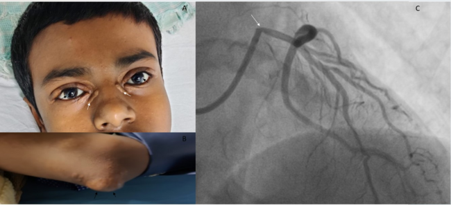 Revascularization was advised; however, the patient's parents declined and opted for medical management. He was started on high-dose statins, ezetimibe, and evolocumab, in addition to aspirin and nitrates. He was doing well on regular follow-up during the first year posttreatment, with significant improvement in symptoms from NYHA Class III to NYHA Class II.