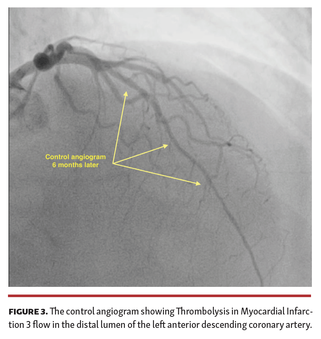 A 48-year-old male patient with a known diagnosis of hypertension presented after 6 months of chest pain (Canadian Cardiovascular Society II-III). Coronary angiography (CAG) showed a chronic total occlusion (CTO) of the left anterior descending (LAD) coronary artery from the mid-region (Figure 1 and Video Series). Percutaneous coronary intervention (PCI) was planned upon detection of viable tissue with myocardial perfusion scintigraphy. The distal portion of the CTO lesion was passed with microcatheter support and a hydrophilic wire. Distal flow could not be achieved despite successive predilations with small-diameter balloons (Figure 2). It was decided to implement an investment procedure to facilitate the next PCI process. Control angiogram 6 months later showed Thrombolysis in Myocardial Infarction (TIMI) 3 flow in the distal lumen of the LAD and there was no residual stenosis (Figure 3).