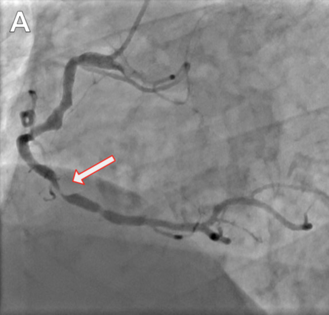 Percutaneous transluminal coronary angioplasty balloon fracture, retention, and embolization are rare complications of PCI. The incidence has historically been estimated at ≤0.8%, which is likely an underestimate given the increasing quantity and complexity of percutaneous procedures.1,2 We demonstrate how to avoid emergency surgery by using basic balloon trapping techniques and a snare in the more distal arterial bed.