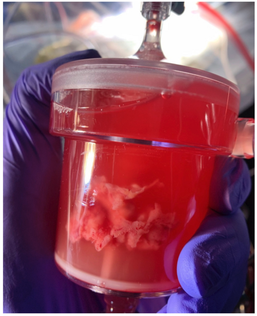 A 38-year-old man with congenital subaortic stenosis was treated with patch enlargement and aortic commissurotomy in infancy and aortic balloon valvuloplasty in childhood, followed by the Ross procedure at age 15. He also had a tricuspid annuloplasty ring followed by surgical bioprosthetic valve replacement (Carpentier Edwards) for severe tricuspid regurgitation. He then had a transcatheter tricuspid and pulmonic valve replacement (22-mm Melody valve in both positions) for severe tricuspid and pulmonic valve regurgitation when presented with bioprosthetic pulmonic and tricuspid valve endocarditis. Blood cultures grew Streptococcus gorgonii and transesophageal echocardiography was notable for large vegetations on the bioprosthetic tricuspid and pulmonic valves (Video 1). A 6-week course of antibiotics was given, but the patient suffered from recurrent septic pulmonary emboli as well as right ventricular (RV) dysfunction, requiring inotropes. Echocardiography was notable for residual vegetations and elevated gradients across both valves. The patient was deemed to be at excessive risk for open valve replacement. Heart transplantation was not possible due to high panel reactive antibody screen results.