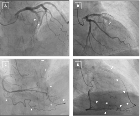 Video 3. Right coronary angiography in LAO 6°/CRAN 24° projection showed a single epicardial collateral arising from the acute marginal branch and supplying the distal left anterior descending artery.