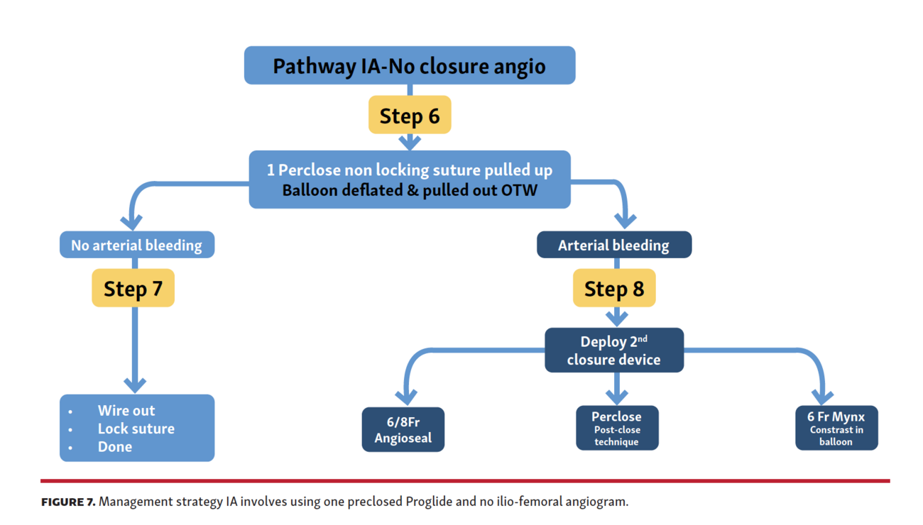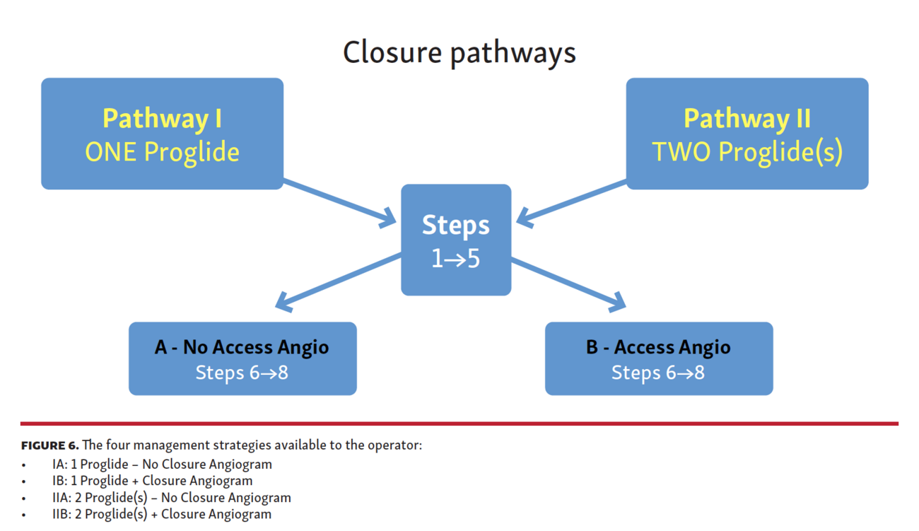 At this point, the operator has a decision to make: complete the closure without an angiogram, or proceed with an angiogram first (Figure 6).