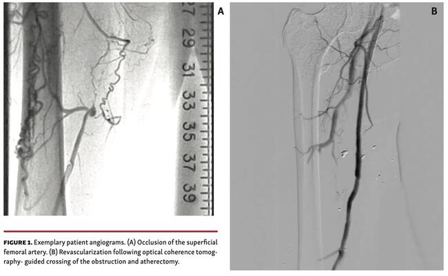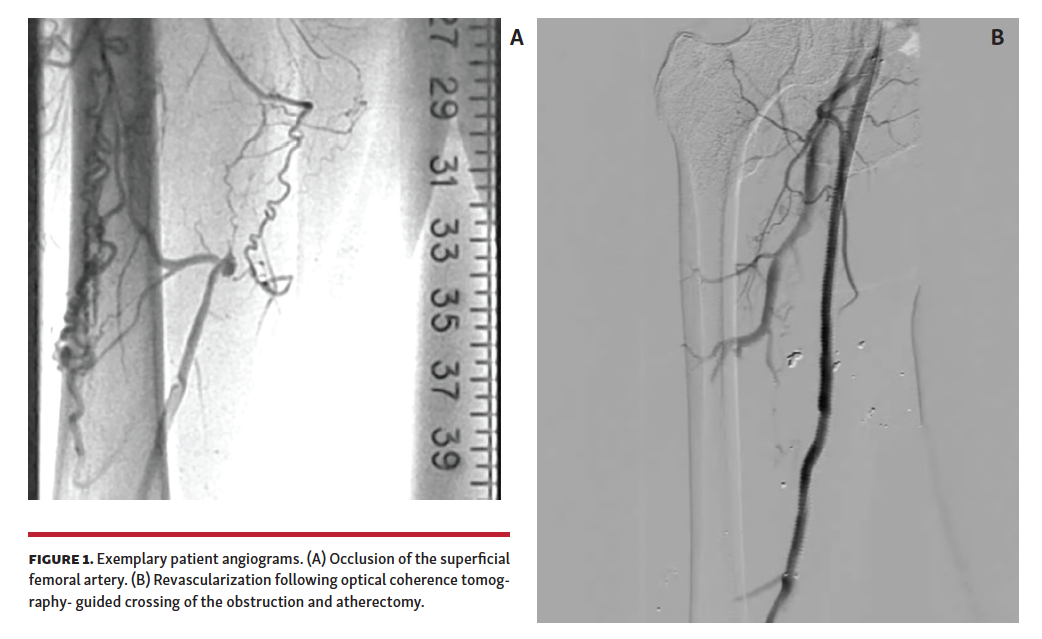 Critical limb ischemia (CLI) represents advanced peripheral arterial disease (PAD), with a quarter million patients in the developed world requiring amputation within 6 months of diagnosis, and up to half resulting in death after amputation within 5 years.1-3 Most lesions causing CLI are chronic total occlusions (CTOs), which can be difficult to treat and often lead to low revascularization rates.4-6 CTOs of the femoropopliteal (FP) arteries are a subset of PAD patients most amenable to percutaneous revascularization, but nonetheless remain challenging both with respect to initial recanalization procedures and long-term patency following the procedure.7-10 Several factors determine the suitability and potential success of percutaneous revascularization, including lesion length, vessel calcification, duration of occlusion, and CTO anatomy. However, even with knowledge of these factors, long-term patency cannot yet be predicted reliably.
