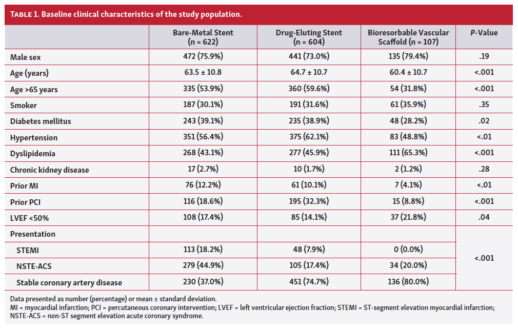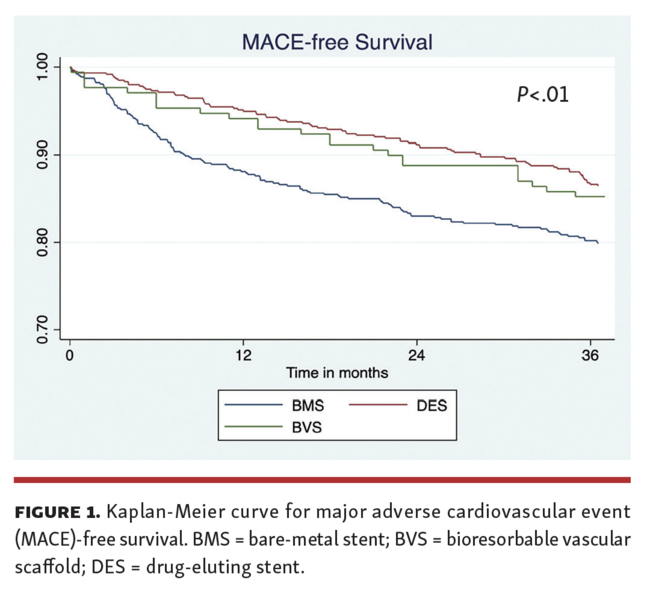 Percutaneous coronary intervention (PCI) with stent implantation is commonly performed to restore and maintain patency in patients with obstructive coronary artery disease. Drug-eluting stent (DES) devices surpassed bare-metal stent (BMS) options due to their lower rates of target-lesion revascularization, despite similar rates of death and myocardial infarction.1,2 However, DES implantation is associated with several limitations, such as very late stent thrombosis,3,4 impaired coronary vasomotion,5 stent fracture,6 and interference with future PCI or computer tomography imaging. Bioresorbable vascular scaffold (BVS) stents were designed to address the limitations of DES while maintaining similar efficacy. The first commercially available BVS, Absorb (Abbott Cardiovascular), was initially received with enthusiasm, but later clouded by concerns over clinical safety with increased risk of device thrombosis in several randomized trials.7-9 These results prompted the commercial decision to cease production of Absorb BVS in late 2017.