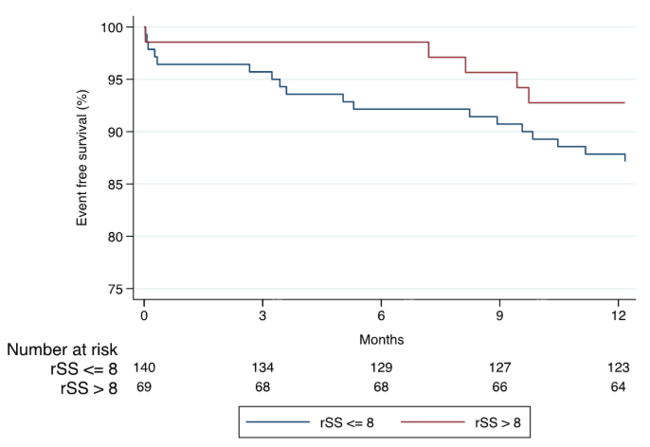 A further subanalysis of event-free survival stratified by residual SYNTAX score demonstrated no difference between those UK-ReVasc registry patients who received complete revascularization as defined by the residual SYNTAX score (rSS <=8) vs those who received incomplete revascularization (rSS > 8). However, this was limited by the small sample size and relatively short follow-up period, as benefits from more complete revascularization in the PCI cohort of the original SYNTAX trial were principally observed at 5 years.24
