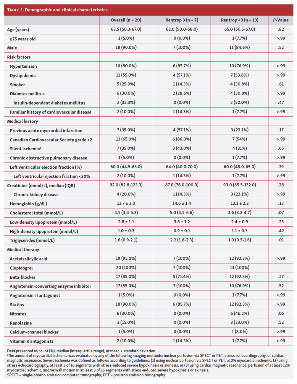 In subgroup analysis, those with Rentrop grade 1 did not differ from those with Rentrop grade 2 in baseline characteristics or medical therapies (Supplemental Table S1).