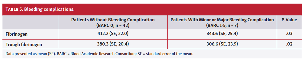In this analysis, we sought to test the hypothesis that USAT would not be associated with hypofibrinogenemia and a corresponding increase in the risk of bleeding complications. Likewise, we sought to compare whether fibrinogen level (above the threshold of hypofibrinogenemia) would be correlated with risk of bleeding complications.