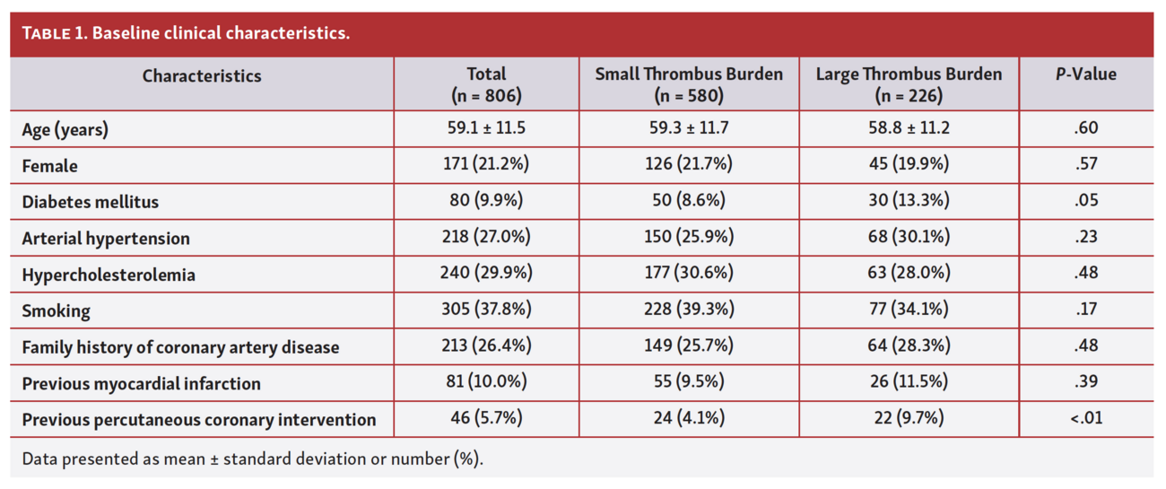 Truly highly thrombotic lesions might impair optimal vessel lumen visualization and stent sizing, possibly translating into stent underexpansion and malapposition.15 Such suboptimal stent placements in a prothrombotic milieu could contribute to a higher chance of early recurrent ischemic event rates, as observed in our study.16 After vessel healing, thrombus dissolution, and stent strut coverage, the clinical impact of thrombus burden may no longer be clinically relevant.