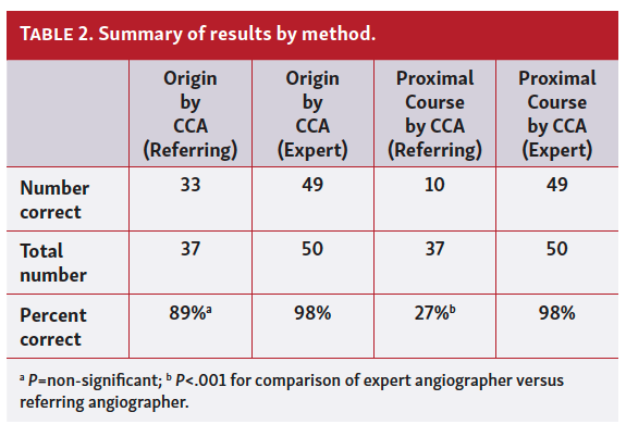Study limitations. An important limitation of our study is the predisposition to sampling bias. We included only patients who were referred for CMR to further define the origin and proximal course of a suspected ACA. Given our patient selection, the diagnostic accuracy of CCA in the true population may be underestimated, as patients in which an ACA was easily identified were likely not referred for additional imaging. Therefore, the true diagnostic accuracy of CCA in all unselected patients who are diagnosed with an ACA at the time of CCA cannot be determined by our study. Despite this, we found that even in cases of ACA who were referred for further testing to determine the origin and proximal course, expert interpretation of the same images improved the accuracy, similar to that of CMR. Another limitation was that only 37 of 50 original catheterization reports were available for review. Therefore, only 37 individuals have all non-missing outcomes. However, statistical procedures, such as generalized estimating equations and generalized mixed linear models, which capitalize on all available information and do not require complete non-missing data for observations to be included in the analyses, were utilized in our analysis.