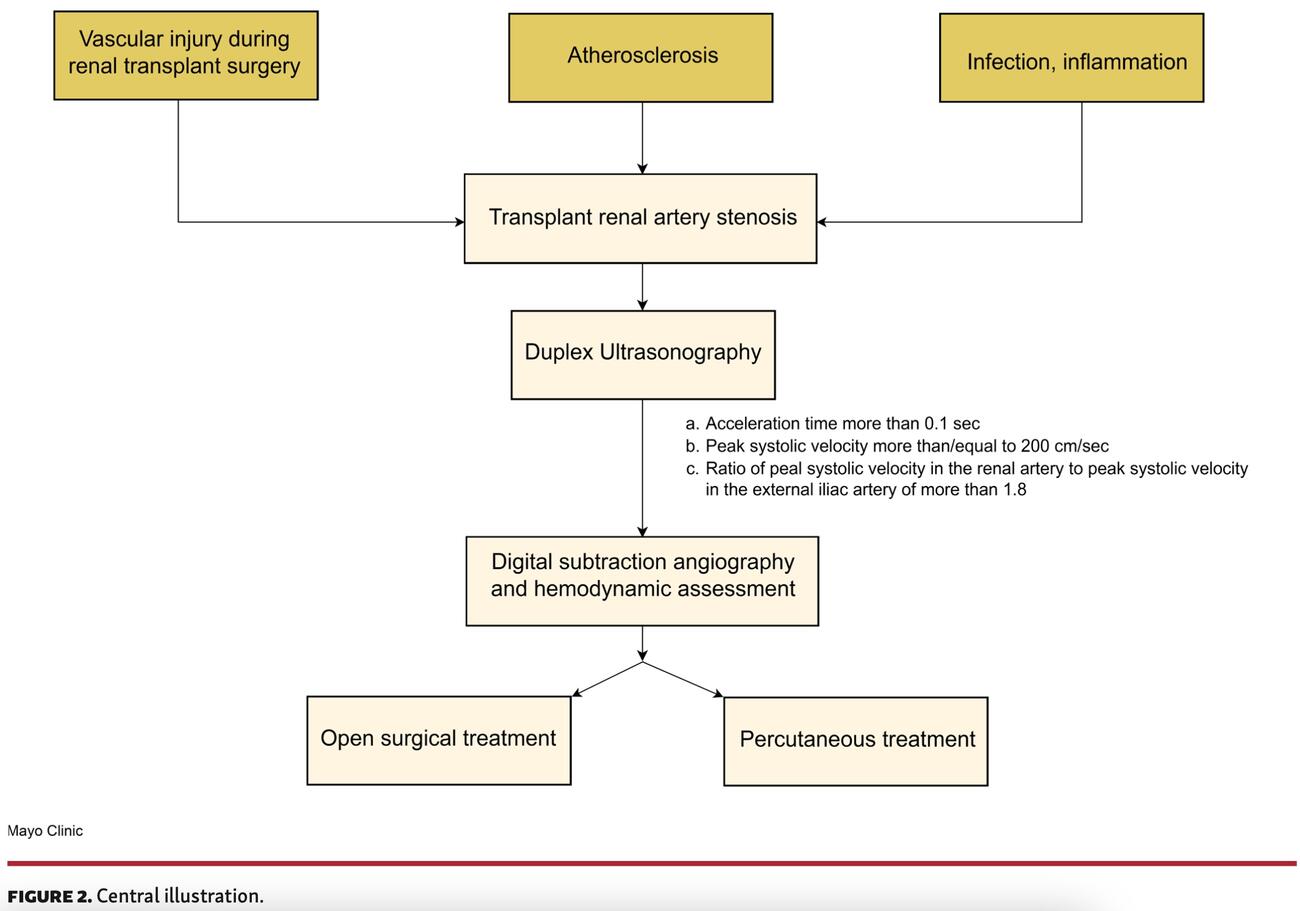 Our approach. At Rush University Medical Center, approximately 100 renal transplantation surgeries are performed every year, and a total of 5000 patients with a renal transplant are on follow-up. Transplant nephrologists have a low threshold for ordering imaging studies to look for TRAS in patients with uncontrolled hypertension and renal dysfunction, but do not interrogate transplanted patients routinely for TRAS following their surgeries. On average, 12 patients are sent for invasive assessment annually based on non-invasive imaging results suggestive of TRAS. This suggests an incidence of TRAS of approximately 10% per year.