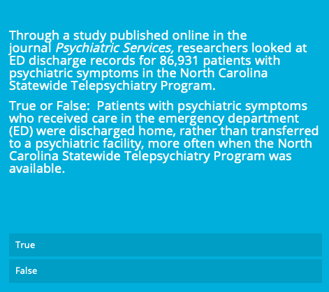 Telepsychiatry Quiz: Patients With Psychiatric Symptoms Discharge Rate