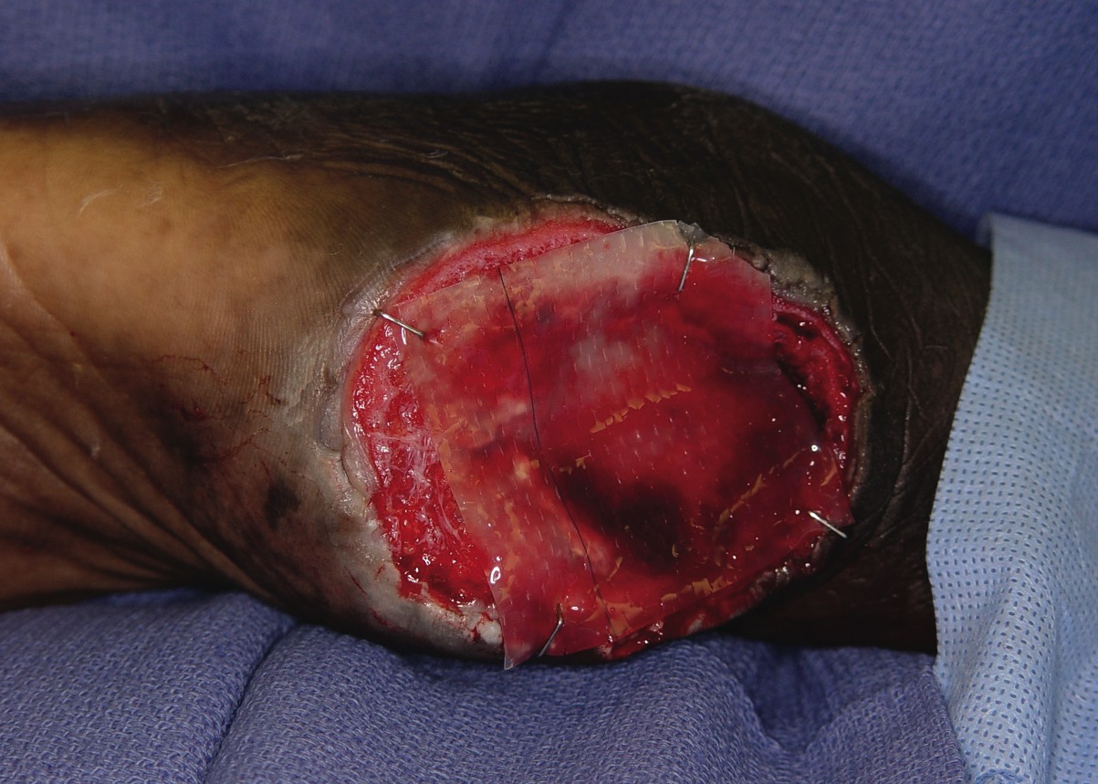 4. Integra™ Bilayer Matrix Wound Dressing (Integra LifeSciences). As more advances emerge in wound healing technology, clinicians are finding more options for patients with various types of wounds. One of the newer options is the Integra Bilayer Matrix Wound Dressing. The Integra dressing is a porous matrix of cross-linked bovine tendon collagen, glycosaminoglycan and a layer of silicone, according to the manufacturer, Integra LifeSciences. The company notes the dressing, which is made for one-time use, is indicated for a variety of wounds, including partial- and full-thickness wounds; pressure, venous, surgical, diabetic and chronic vascular ulcers; and surgical and trauma wounds. Integra cites a study of 158 ulcers in which 92 percent of 107 patients achieved complete healing either with Integra alone or with small subsidiary flaps.2 John Steinberg, DPM, has used Integra to treat patients with complicated wounds with exposed deep tissues including tendon, capsule and even bone. If the wound base has available blood flow, Integra can function as a scaffold for tissue growth, according to Dr. Steinberg, an Assistant Professor in the Department of Surgery at the Georgetown University School of Medicine. He says the ready “off the shelf” availability of Integra is a key advantage. Since the product has a very long room temperature shelf life and is kept in stock in ORs, Dr. Steinberg says Integra is available even when DPMs do not have advance notice of a patient presenting for treatment. When treating burn patients, physicians have been using Integra as a prelude to a split thickness skin graft, points out Dr. Steinberg. He says Integra’s structure serves as a scaffold for angiogenesis and promotes neodermis growth even in deep wounds. Dr. Steinberg adds that Integra functions particularly well when one combines the product with negative pressure dressings. He has had successes and failures with the dressing but maintains that using negative pressure wound dressings over Integra is key to ensuring the success of the matrix dressing. 5. Promogran Prisma™ Matrix (Johnson & Johnson Wound Management). Another wound matrix combines several ingredients into one handy package. Promogran Prisma Matrix is comprised of 55% collagen, 44% oxidized regenerated cellulose (ORC) and 1% silver ORC. Dr. Steinberg, who has used Promogran Prisma for a few months, says this combination of ingredients is an advantage since one does not need to use several different products in one wound. The matrix is innovative in that it combines matrix metalloproteinases (MMPs) with low-dose, slow release silver for an antimicrobial effect, according to Dr. Steinberg, a Fellow of the American College of Foot and Ankle Surgeons. He also points out that Promogran Prisma retains good moisture in the wound and addresses the cause of exudate rather than just absorbing exudate. Promogran Prisma is indicated for diabetic, venous and pressure ulcers as well as ulcers caused by mixed etiologies, according to the company. It is also indicated for full- and partial-thickness wounds, donor sites, abrasions, traumatic wounds and surgical wounds that have dehisced. Although Dr. Steinberg notes the product does not contain a growth factor, he says DPMs can combine Promogran Prisma with becaplermin (Regranex, Johnson & Johnson). When prescribing topical growth factors, he says he uses Prisma adjunctively in order to protect the growth factors from breakdown.