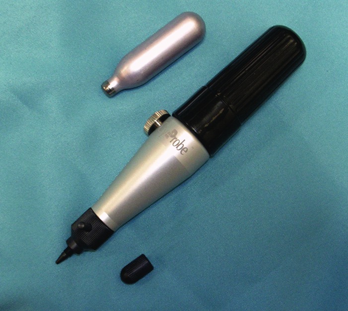 9. CryoProbe™ (H&O Equipments). Cryosurgical technology has surfaced in recent years as a method of treating various lower extremity skin conditions. A newer version of the technology is the portable Cryoprobe unit. As the company notes, the Cryoprobe combines a high pressure jet with low temperatures. Treatment time only takes 15 to 30 seconds and H&O Equipments says patients will experience “little to no discomfort.” Gary Dockery, DPM, has found the Cryoprobe helpful in treating various benign lesions of the lower extremity, including verrucae, skin tags, seborrheic keratoses and molluscum contagiosum. As he explains, the handheld device uses small cartridges to convert nitrous oxide gas into liquid N2O at minus 127º F under pressures of 725 psi. “Since it is small and appears very high-tech, it is well accepted by older patients and children. There is very little discomfort with its use and the results are excellent,” notes Dr. Dockery, a Fellow of the American Society of Podiatric Dermatology and a Fellow of the American College of Foot and Ankle Surgeons.