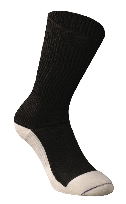 A new pair of diabetic socks combines an attractive appearance with the ability to let patients monitor their feet. Euros Rx for Diabetics are available in both black and white. The manufacturer EuroSocks North America notes that the black socks have a white bottom so patients can monitor their feet while having a dress sock in a traditional color and will not have to wear white socks every day. The constriction-free socks offer a woven arch support, a mild ankle brace, a padded terrycloth sole and a flat knit toe seam, according to the company. The company notes that Euros Rx enable patients to monitor wound drainage. It notes the socks also stimulate blood flow, increase circulation, relieve swelling and reduce muscle fatigue. Company: EuroSocks North America Product: Euros Rx for Diabetics For more info, circle 400 on your reader service card