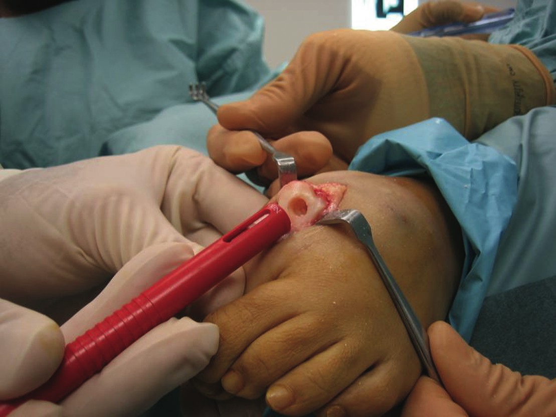 Subchondral cyst formation in the first MPJ can be attributed to many different etiologies, including trauma and inflammatory disease. Traumatic etiologies can be sub-classified into morbidity of an acute trauma and morbidity of biomechanical/structural malarticulation such as hallux valgus/hallux rigidus leading to osteoarthritis. Inflammatory etiologies include rheumatoid arthritis, seronegative spondyloarthropathies and crystalline arthropathies. Recent evidence supporting concomitant findings of subchondral cyst formation and the severity of HAV infers an increased prevalence of this associated pathology. In a retrospective review, Engel, et al., examined 265 first MPJ of 195 patients (with a mean age of 54.2) for the existence of cartilaginous lesion. The researchers found a statistically significant correlation between the grade of the cartilage damage and the hallux valgus angle.3 One should consider concomitant treatment of cartilaginous injuries during the surgical correction of HAV. Forms of treatment include curettage, microfracture/marrow stimulating technique (MST), decompression osteotomies, autograft/allograft and absorbable synthetic grafts and/or joint arthroplasty with implant or fusion.