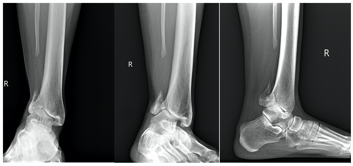 A thirty-seven-year-old Asian female presented to our facility in September 2020 with concerns of right lateral ankle pain and instability. The patient related a history of mild pain in her ankle since she was young, but she now seeks medical attention due to recently worsening symptoms. She currently relates constant right ankle pain that causes her to transfer weight onto the left leg when she stands or walks.