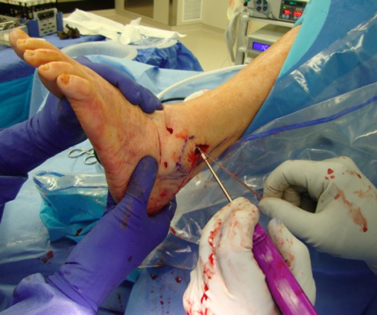 The current gold standard for treatment of ankle sprains includes conservative care in the form of rest, ice, elevation of the affected extremity and compression with bracing and functional rehabilitation. If conservative treatment fails, surgical stabilization of ankle ligaments is warranted. Historically, physicians have treated lateral ankle stabilization with an open approach using either anatomic repair or non-anatomic repair. There have been excellent results in long-term studies. Bell and coworkers reported the long-term follow-up data using the Broström technique for 23 ankles with lateral instability.5 The mean follow-up was 26.3 years and the mean functional score was 92 of 100.