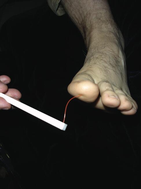 Thermal discrimination and pinprick sensation can evaluate small nerve fibers, associated with protective sensation and nociception. A cool material, such as a metallic object can allow one to assess thermal discrimination.11 One can carefully evaluate pinprick sensation with a sharp object, including safety pins, which one should discard after every patient.12 Combining pinprick perception with vibratory perception and ankle reflexes can increase sensitivity for detecting polyneuropathies.13