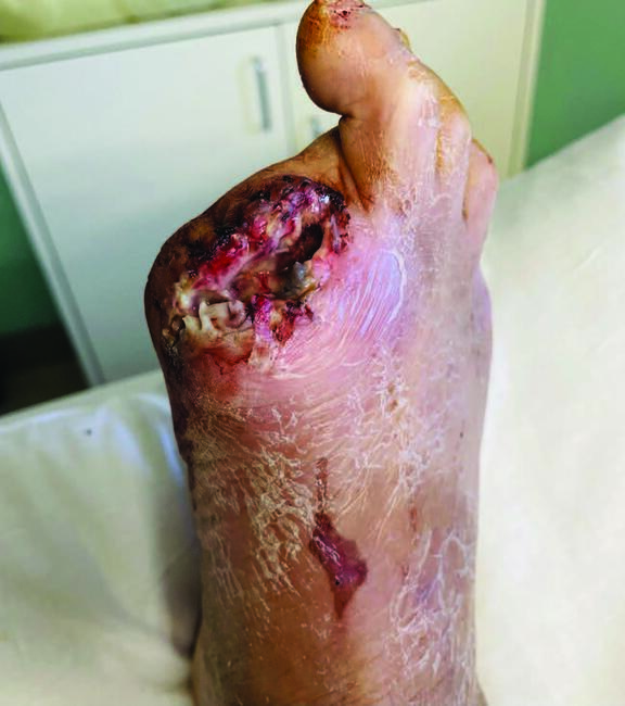 Unfortunately, the study found that most patients reulcerated after fifth metatarsal ray resections.5 Approximately 60 percent (n=71) of the patients developed a postoperative wound, and 40 percent (n=46) remained wound-free through to their final postoperative follow-up. Those with wound recurrence underwent wound classification to better elucidate potential causation. Recurrence of the previous wound accounted for 30 of the wounds, 22 were due to transfer lesions, and 13 involved characteristics of both transfer lesions and recurrence. The follow-up time needed for patients with reulceration was significantly higher at an average of 35 months versus 12 months for those without postop wound recurrence. Of the 117 patients that underwent fifth metatarsal resections, 28 percent required additional, more proximal, ipsilateral fifth ray resection, 12.8 percent underwent transmetatarsal amputations, and 22.2 percent went on to have proximal amputations.5