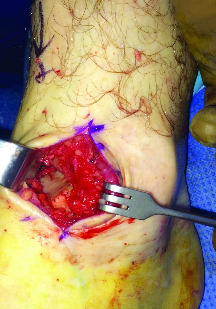 The final and most promising option is cartilage paste grafting. In this case, the surgeon needs to coordinate the procedure with a knee specialist. Take the cartilage from the non-weightbearing chondral notch of the knee. Morselize the cartilage into a paste, place the paste into the ankle joint and spread it over the arthritic regions. Often, one can cover the paste with a thin cover of fibrin glue to adhere the material in place. Do this in a dry field using a small open incision approach. It is important to allow the cartilage paste to adhere. Do not allow weightbearing for approximately six weeks. Patients start range of motion exercises at two weeks post-surgery but patients should be non-weightbearing and perform dorsiflexion/plantarflexion only.