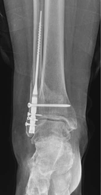 Intramedullary tibiotalocalcaneal (TTC) nailing is an established and well-accepted surgical option for degenerative hindfoot and ankle arthritis and for deformities such as Charcot arthropathy. Indications for use have expanded to acute trauma such as ankle and pilon fractures. As a load-sharing implant, this option provides a biomechanically stable construct with minimal soft tissue disruption with the allowance of early weight bearing which is particularly beneficial for the geriatric population. The goal with this fixation construct is stabilization of the operative limb, rather than anatomic reduction.