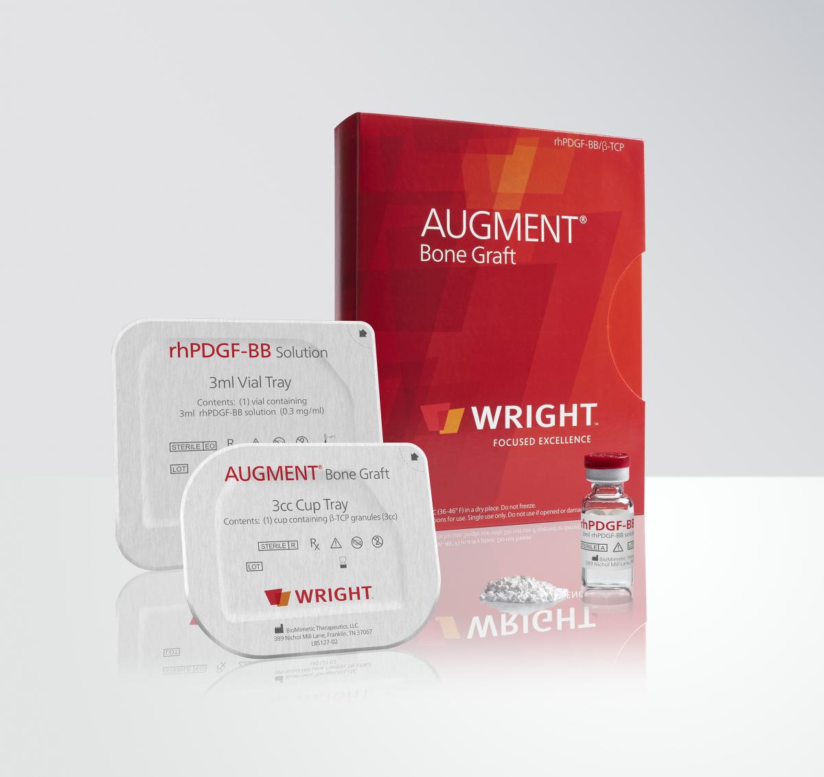 Wright Medical adds that Augment is the only biologic product indicated for open hindfoot and ankle arthrodesis. It cites level 1 evidence of the graft’s safety and efficacy, noting that numerous clinical trials have proven Augment to be safe.