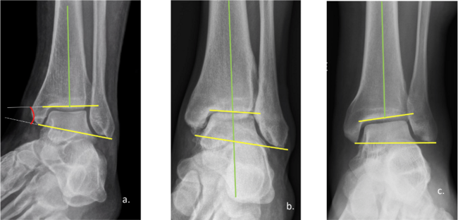 As I have continued to review over 70,000 ankle X-rays during my career, the number and variety of ankle deformities continued to rise. I stopped measuring every mortise and focused solely on deformities with 5 degrees or greater. The number of 3-degree ankle deformities is pretty significant considering the number of ankle procedures I have performed over the years. Clinically, deformities greater than 5 degrees seem far more likely to be symptomatic in my experience, especially in athletes and soldiers. In most cases, the ankle joint was far less symptomatic than the foot or the leg. Only if there was cartilage pathology, ligamentous laxity, or early degenerative joint disease present was the ankle joint actually symptomatic. More often than not, the foot or the shin presents with the resultant compensatory pain.