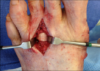 For patients who are sedentary or those who have low ambulatory demands, lesser MPJ fusion may be a viable option. Karlock published a review of 11 patients who had second MPJ arthrodesis for the treatment of crossover hammertoe deformity.4 Ten of the 11 patients reported good or excellent results with no complaints of metatarsalgia or recurrent deformity. However, the majority of the patients had low ambulatory demands and were mostly elderly with an average age of 63.