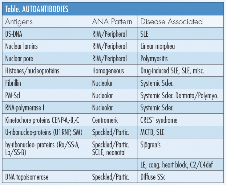 Sontheimer RD, McCauliffe DP, Zappi E, Targoff I. Antinuclear antibodies: clinical correlations and biologic significance. Adv Dermatol. 1992;7:3-52.