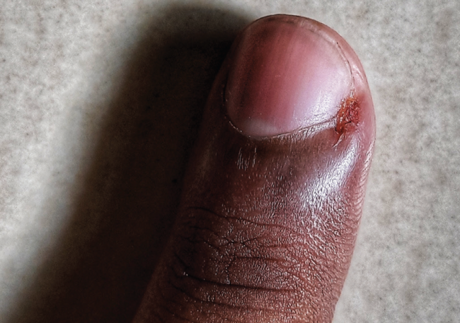Onycholysis, inflammatory paronychia, nail fragility, and onychoschizia are common adverse events associated with multiple cancer therapies, especially taxanes. To help manage these changes, patients can apply a combination of tazarotene around the nail fold nightly; clobetasol for perionychial erythema daily up to 3 weeks when needed; weekly white vinegar water soak for 5 minutes (to prevent infection, which is common); and a prescription nail protectant (the two I use, with no preference between the two, are polyureaurethane, 16%, and hydrosoluble nail lacquer).