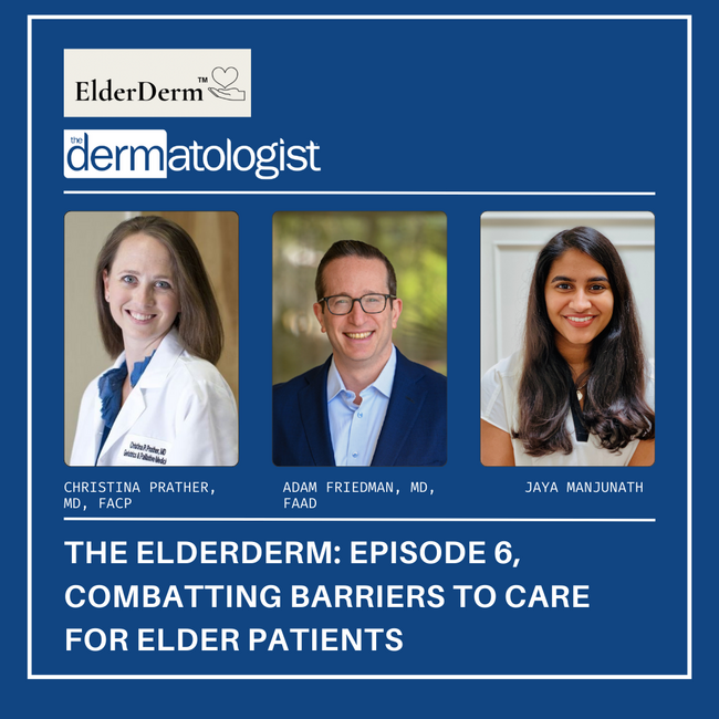 Dr Friedman: Welcome back to the Elder Derm Podcast. I am your co-host, Dr Adam Friedman from the George Washington School of Medicine Health Sciences, and I'm joined by my partner in crime, Jaya, who is a fourth-year medical student also here at GW, applying for dermatology. So keep your eyes out for her. Very lofty and heavy application coming to an Aris website near you. We are so unbelievably fortunate to have with us Dr Christina Prather, who's an associate professor and the director of geriatrics and palliative care, also here at GW. Her talk barriers to care considerations and tools to improve adherence to therapy led off our inaugural Elder Derm conference. And so it's no surprise she's our first guest on the Derm Conference. Dr Prather, thank you so much for being here with us.