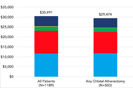 Of note, orbital atherectomy (R2-6; N=503) turned out to be slightly cost saving, with mean index procedure cost of $11,729 and by 2-year the mean costs of $29,474, numerically lower than the overall LIBERTY (all-devices) mean 2-year cost of $30,491 (Figure 4, below).
