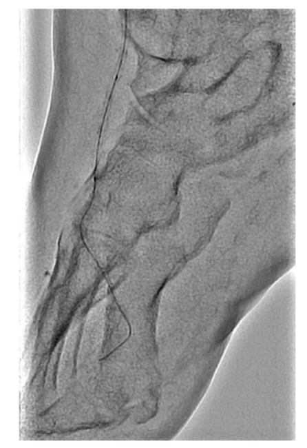 Desert foot or end-stage foot comprises up to 20% of critical limb threatening ischemia (CLTI) patients, and is characterized by occlusions of the foot arteries including the dorsal pedis, lateral tarsal artery, both plantar arteries, and the plantar arch.1 Patients with end-stage foot are commonly diabetic and/or have advanced chronic kidney disease. These patients are at very high risk for major amputation and generally are poor candidates for surgical revascularization due to poor target vessels in the foot. Consequently, novel techniques such as percutaneous deep vein arterialization (pDVA) are emerging as last resort endovascular limb saving therapies for cases that otherwise would be destined for limb amputation.