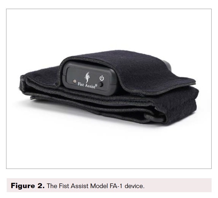 The Fist Assist Model FA-1 device was assigned to each enrolled subject with a detailed education session. All subjects were asked to use their assigned device twice daily for two 2-hour sessions, once in the morning and once in the evening. Patients applied the device to the nondominant arm above the level of the elbow and kept a written log to record use, complications, and any problems.