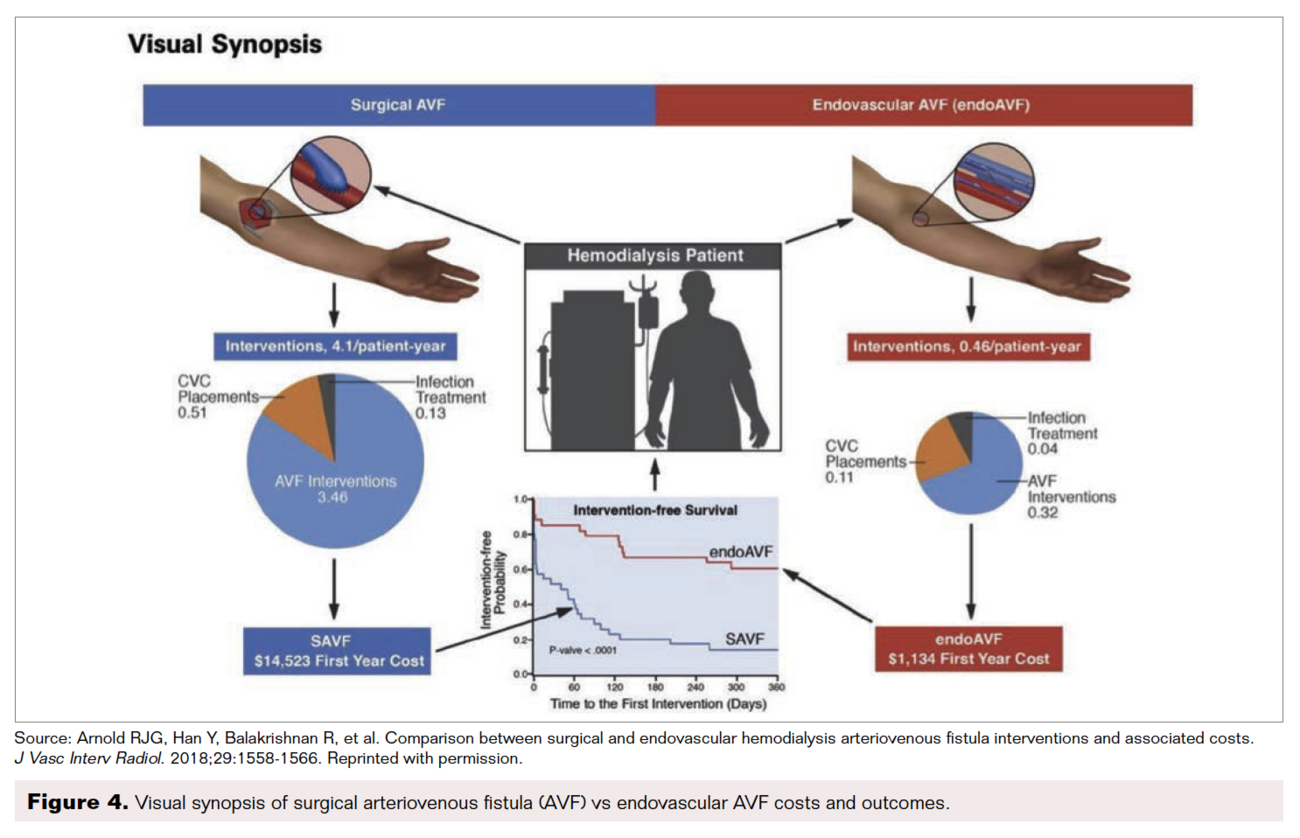 10. Arnold R, Han Y, Balakrishnan R, et al. Comparison between surgical and endovascular hemodialysis arteriovenous fistula interventions and associated costs. J Vasc Intervent Radiol. 2018;29:1558-1566.