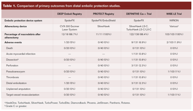Key words: atherectomy, distal embolization, embolic protection devices, infrainguinal Interventions