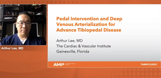 Dr. Lee presents on Pedal Intervention and Deep Venous Arterialization for Advanced Tibiopedal Disease at AMP 2021.