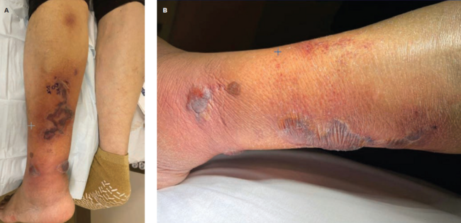 2. Garelik J, Terushkin, V, Nagler, A, et al. An unusual presentation of calciphylaxis. Cutis. 2020;105(3):E24-E27.