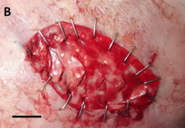Flap reconstruction of pressure ulcers offers an important clinical means of decreasing morbidity in both inpatient and outpatient settings. Unfortunately, complication rates following pressure ulcer reconstruction using flap coverage are reportedly high, as patients commonly have multiple risk factors for postoperative dehiscence, hematoma formation, partial or complete flap necrosis, infection, and ulcer recurrence.1-3 Risk of pressure ulceration in patients with spinal cord injury, the elderly population, and patients who are immobilized due to chronic conditions is significant.4 On average, the prevalence of pressure ulcer in patients across various care settings in the United States was reportedly 9%.4,5 A novel method of managing chronic wounds was developed in which a synthetic hybrid-scale fiber matrix is applied prior to flap reconstruction. A retrospective study reported complete wound closure rates of 85% in diabetic foot ulcers and 91% in venous leg ulcers after 12 weeks when the synthetic hybrid-scale fiber matrix was included in the clinical approach.6