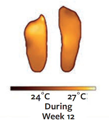 On day 28, a temperature asymmetry was seen in one scan (Figure 1). On telephone outreach, the patient reported development of a superficial blister on the arch of the right foot. He was instructed to remain non-weightbearing and did daily foot checks to keep the skin protected until it healed without incident several days later.