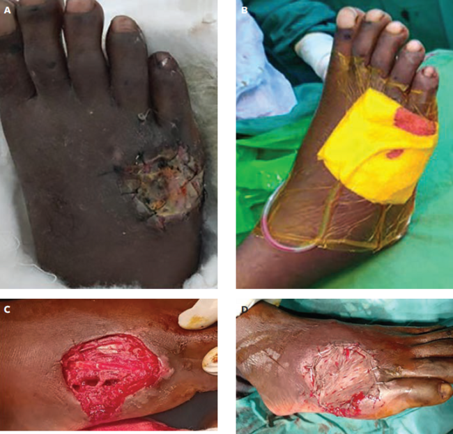 Wound infection commonly results when microbes (bacteria, fungus) breach the host defenses, leading to harmful alterations in the host.1 The infection can result from traumatic injuries, which can lead to skin breaches and contamination from external sources, or sometimes from minor injuries (eg, thorn pricks, minor cuts, or bruises), and in rare instances from nonpenetrating soft tissue injuries.2 The negative effect of bacteria depends on the patient's immune system, as well as the quantity and virulence of bacteria.2 The toxic metabolites produced by the bacterial infection can hamper wound healing and promote rapid tissue loss in the case of necrotizing soft tissue infection.3 This ultimately leads to a complex infected wound with tissue loss and exposed underlying vital structures such as bone, muscle, nerves, and tendons.4 The steps in the management of these complex infected wounds comprise optimization of the patient's physiological state, early antibiotic therapy, debridement, and wound care to control the infection followed by reconstructive procedures to achieve wound healing.4