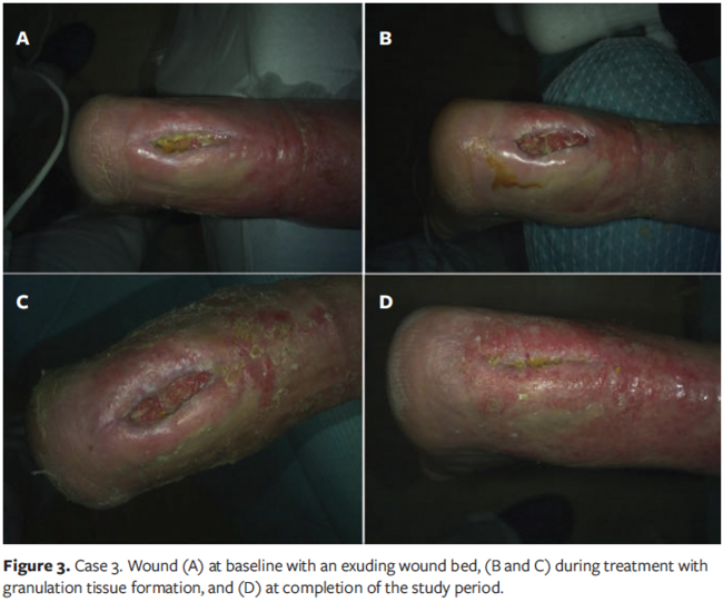In the current case series, the run-in period in which topical antimicrobial dressing was used was effective in controlling bacterial burden before starting NPWT. Patient satisfaction regarding the medical device and its portability was very high. From the perspective of a health care professional, the main aspects outlined were promoting granulation tissue formation and achieving complete wound healing with NPWT. In the authors’ opinion, use of compression therapy and NPWT was quite important, and no serious drawbacks occurred with this therapeutic approach.
